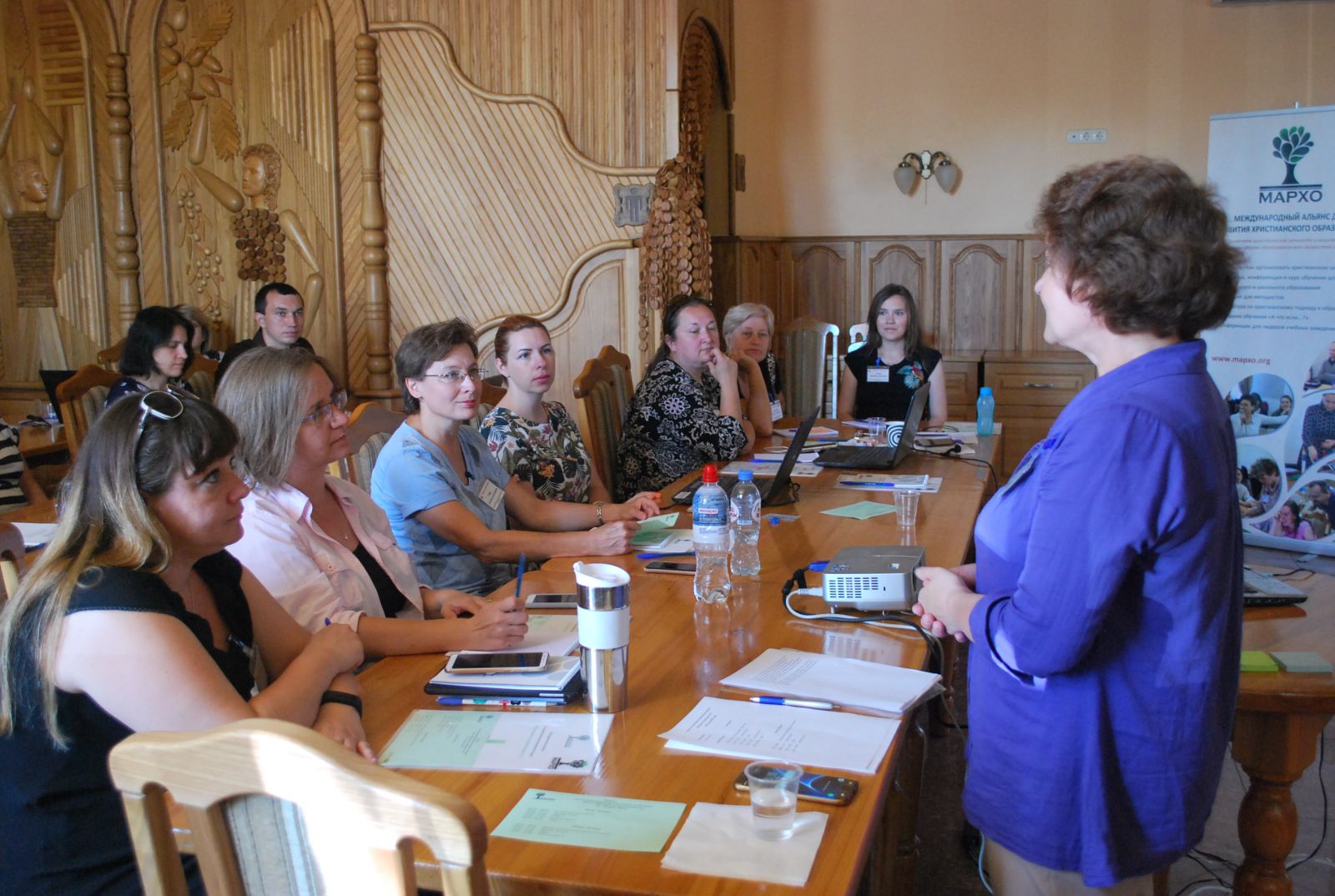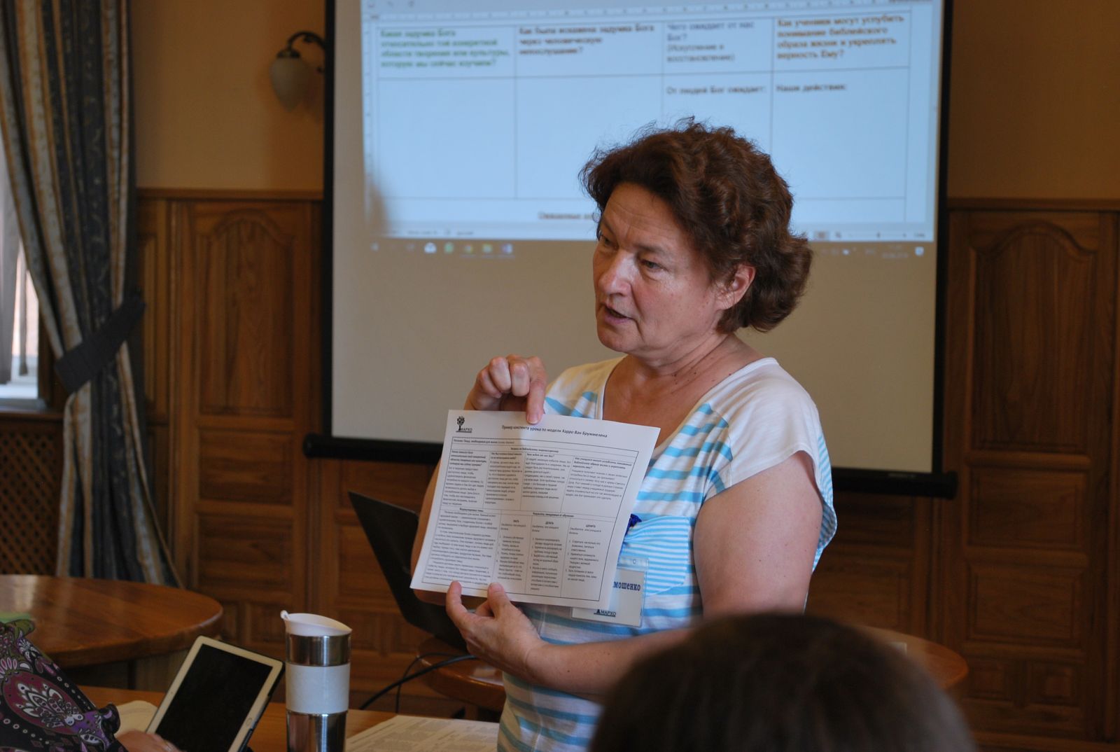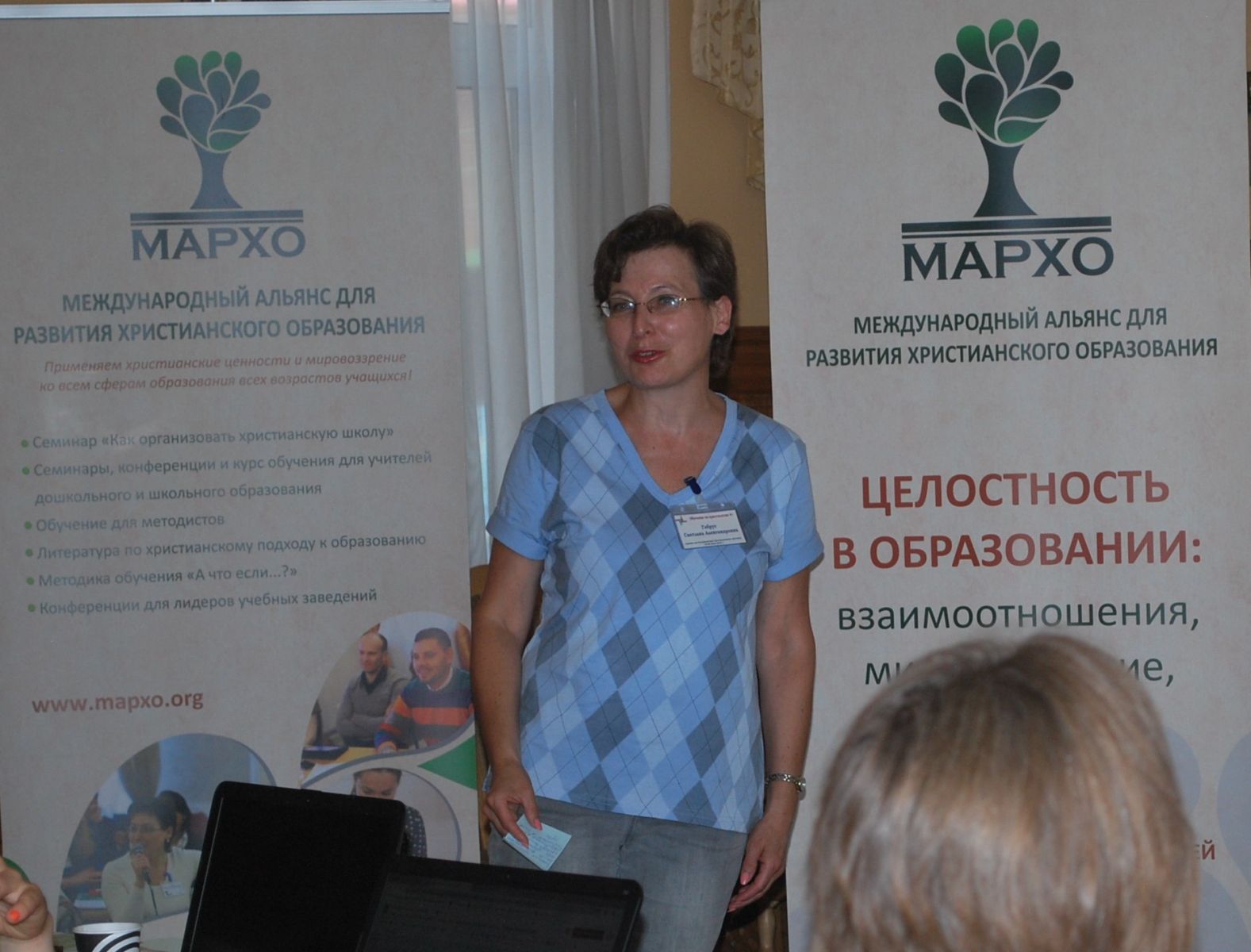 Надежда Тимошенко уделила особое внимание работе курса "Обучение по-христиански 4+" с сайта МАРХО и отдельно остановилась на уроках с библейской интеграцией, представленных на сайте "А что если...?", предложила как один из примеров свой урок физики по модели "С Богом на уроке". Педагоги, в свою очередь, поделились своими уроками с интеграционными моментами из своей практики.